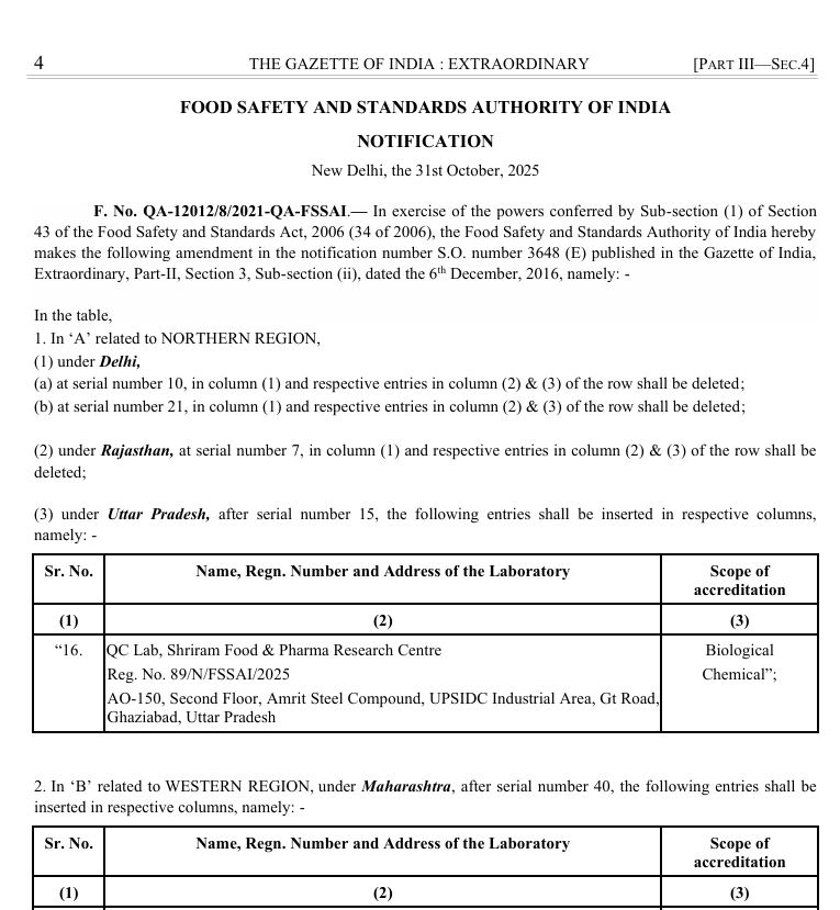 Shriram Food and Pharma Research Center